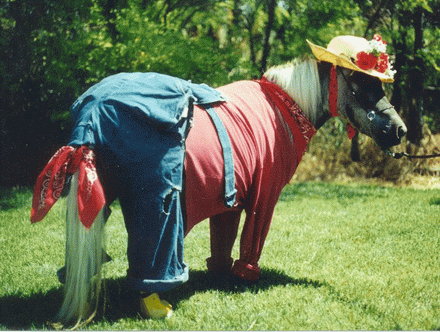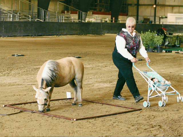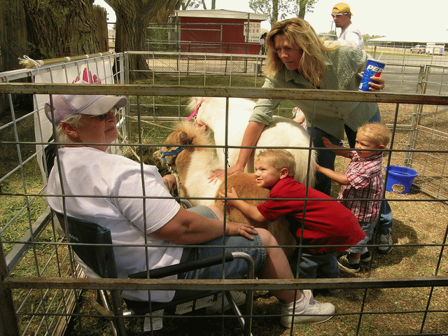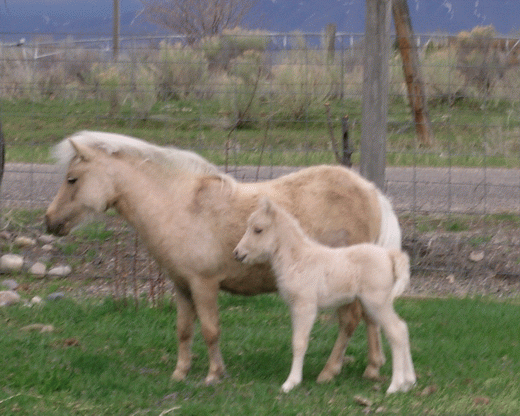 We use Lady and her foal for Baby Animal Day in which people come They got to pet her and her foal. Lady is such a sweet horse that she does not mind all of the attention. She gets at this time. We had one children come up and give Lady a hug around her back legs and she didn't mind at all. She just stood there being very still until the child let go. This is the kind of miniature we are breeding for.